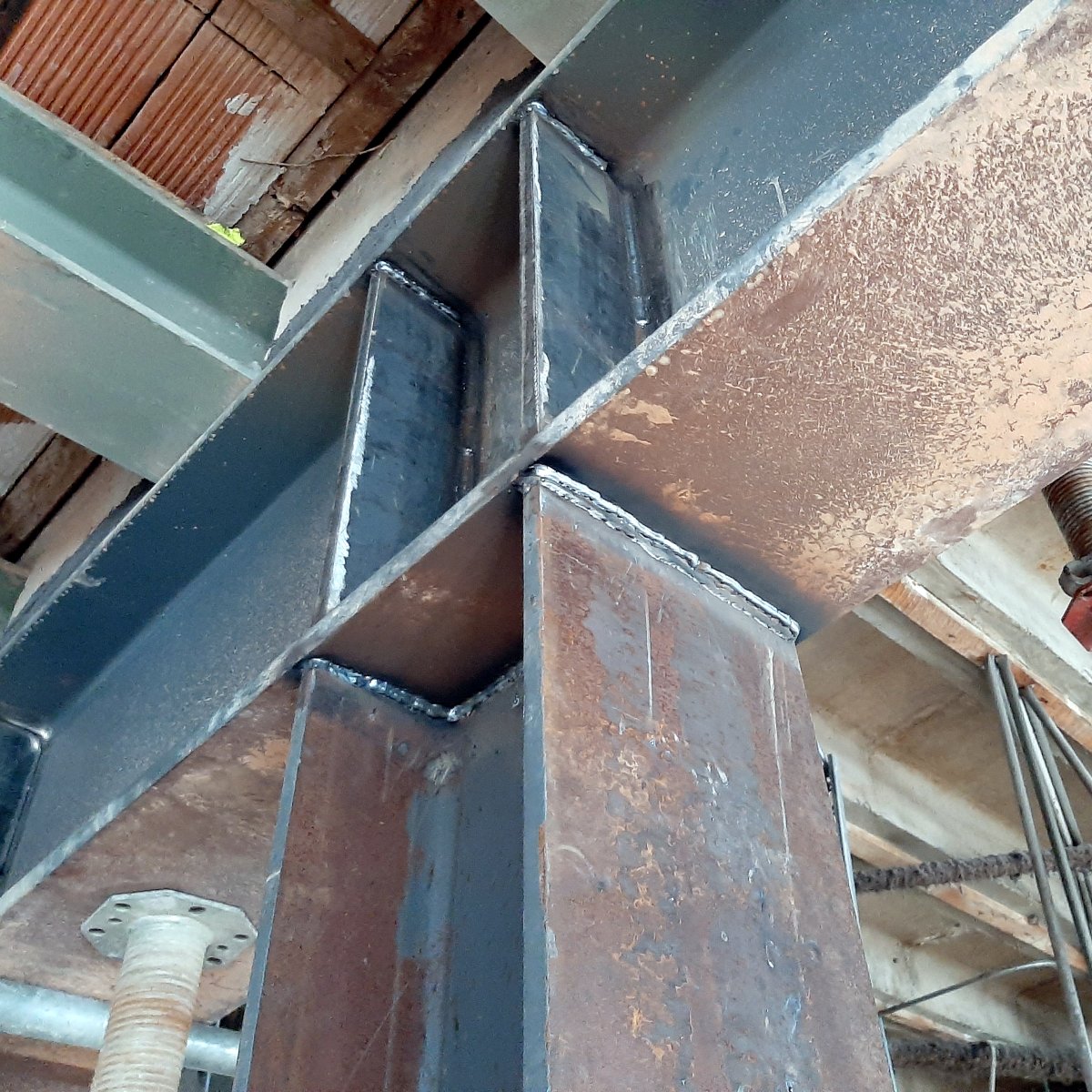 Particularité : Mise en place d’un gros profilé métallique pour reprendre les 7 niveaux de dalles supérieures.