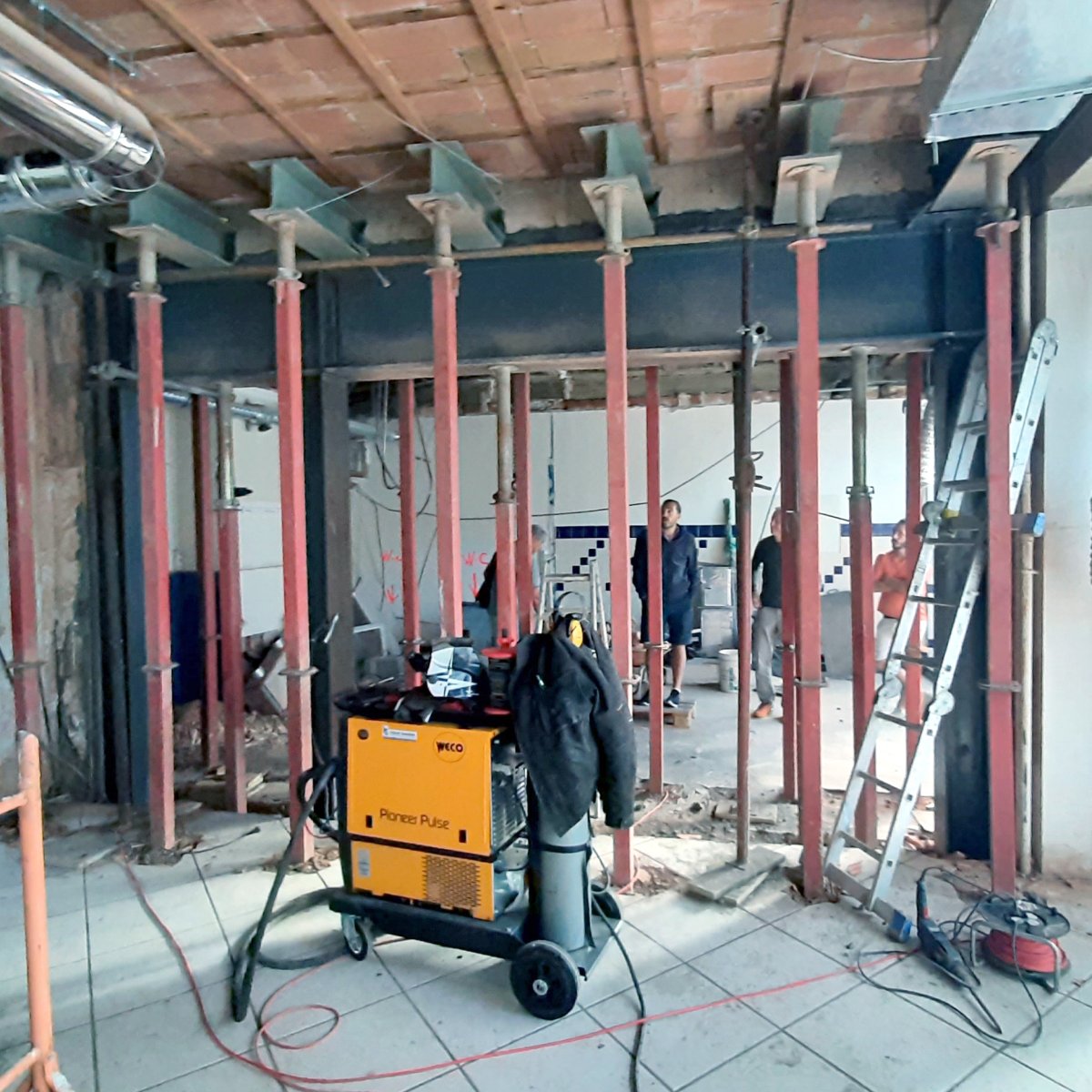 Création d’une ouverture entre les 2 bâtiments pour créer un restaurant sur les 2 immeubles.