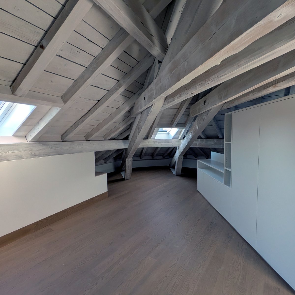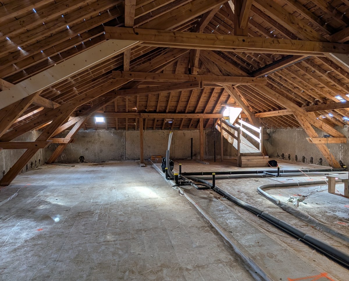 Transformation et renforcement des combles des 2 immeubles existants, tout en conservant la charpente visible.
